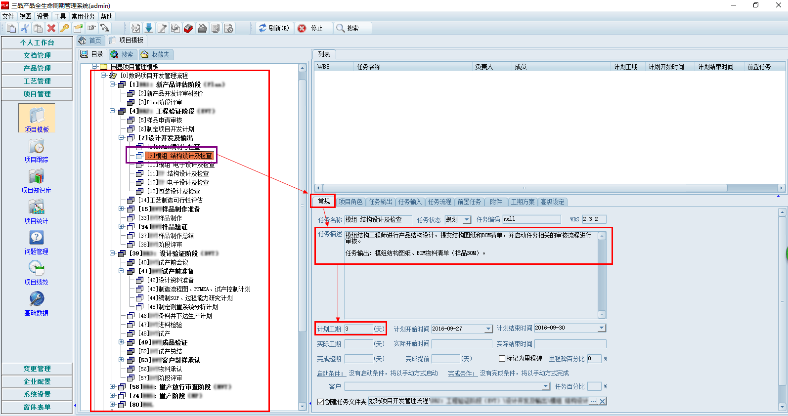 貼合國顯科技APQP、TS16949開發(fā)管理要求在PLM系統(tǒng)中規(guī)范建立各類項(xiàng)目開發(fā)管理流程模板(階段任務(wù)、子任務(wù)、任務(wù)描述、任務(wù)項(xiàng)目角色、初始工期、任務(wù)輸出、任務(wù)輸入、任務(wù)相關(guān)流程、各任務(wù)前后置關(guān)系、啟動(dòng)條件和完成條件、里程碑設(shè)置等等),規(guī)范了項(xiàng)目開發(fā)管理流程,同時(shí)也滿足國內(nèi)外客戶的審廠標(biāo)準(zhǔn)。