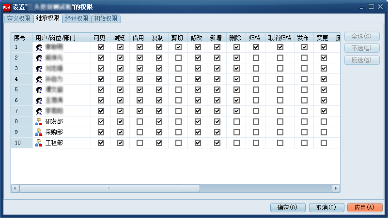 國顯科技在三品PLM系統(tǒng)中建立了一套細(xì)致的權(quán)限管理機(jī)制,規(guī)范管理各部門、各用戶在系統(tǒng)中對資料的查閱、復(fù)制、修改、刪除、打印、導(dǎo)出等權(quán)限,且實(shí)時(shí)記錄各項(xiàng)操作記錄,便于追溯查看。