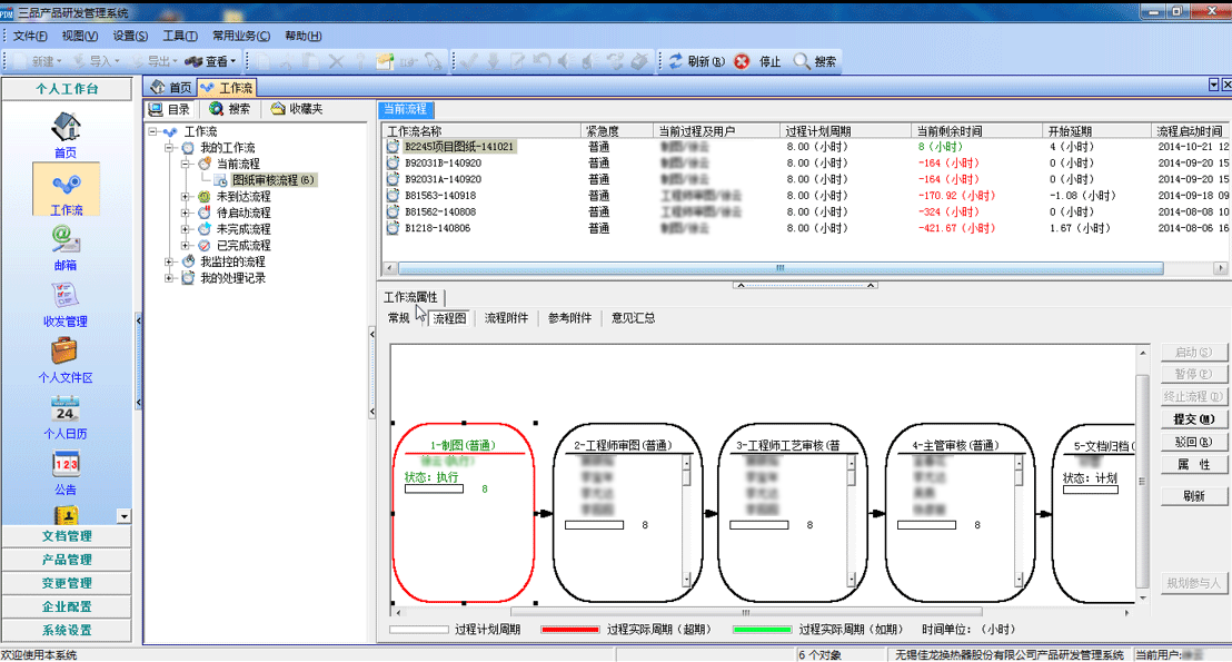 通過三品PDM平臺,在實施初期,三品實施顧問結(jié)合佳龍換熱器實際現(xiàn)狀,整理、總結(jié)、優(yōu)化了符合佳龍換熱器業(yè)務流程的五大主要業(yè)務流程。實現(xiàn)從市場部接單、技術(shù)主管確認訂單、一直到圖紙設計、審核、校對、批準、變更等整個生命周期的流程控制。大大減低了之前部門之間,員工與員工之間扯皮推諉的現(xiàn)象,同時通過不同業(yè)務流程的統(tǒng)計功能,對眾多的管理決策起到了一定的數(shù)據(jù)支撐。