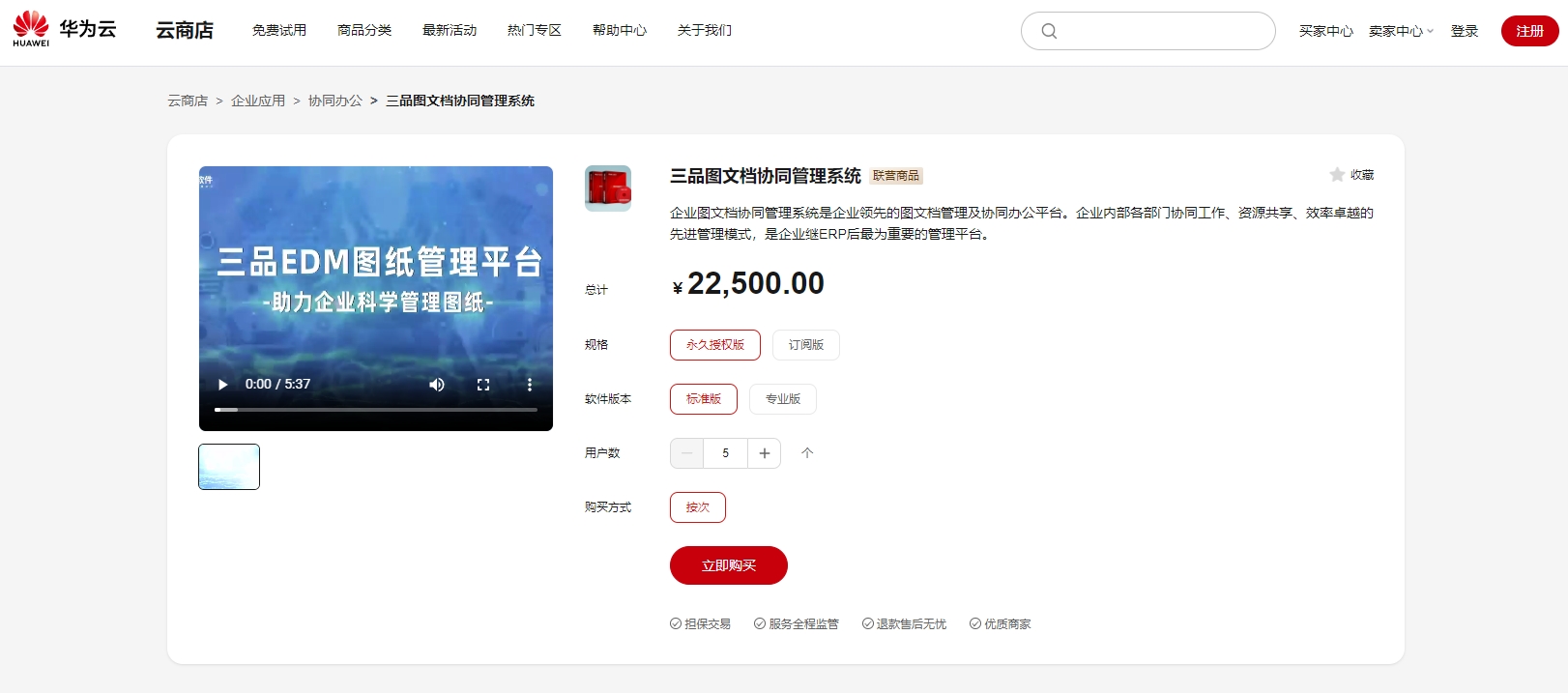 喜報!三品圖文檔協(xié)同管理系統(tǒng)正式入駐華為云商店聯(lián)營商品