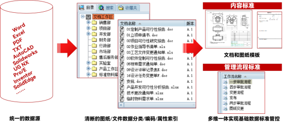 三品PDM系統(tǒng)提供分類管理功能,支持將經(jīng)過驗(yàn)證的典型設(shè)計(jì)、標(biāo)準(zhǔn)件、通用件、標(biāo)準(zhǔn)工藝規(guī)程等作為企業(yè)知識(shí)資產(chǎn)入庫(kù)管理。在新項(xiàng)目啟動(dòng)時(shí),工程師可從知識(shí)庫(kù)中快速檢索和復(fù)用已有成果。系統(tǒng)還能幫助企業(yè)梳理和固化設(shè)計(jì)規(guī)范、制圖標(biāo)準(zhǔn)等,并通過流程強(qiáng)制應(yīng)用,提升設(shè)計(jì)的標(biāo)準(zhǔn)化水平。